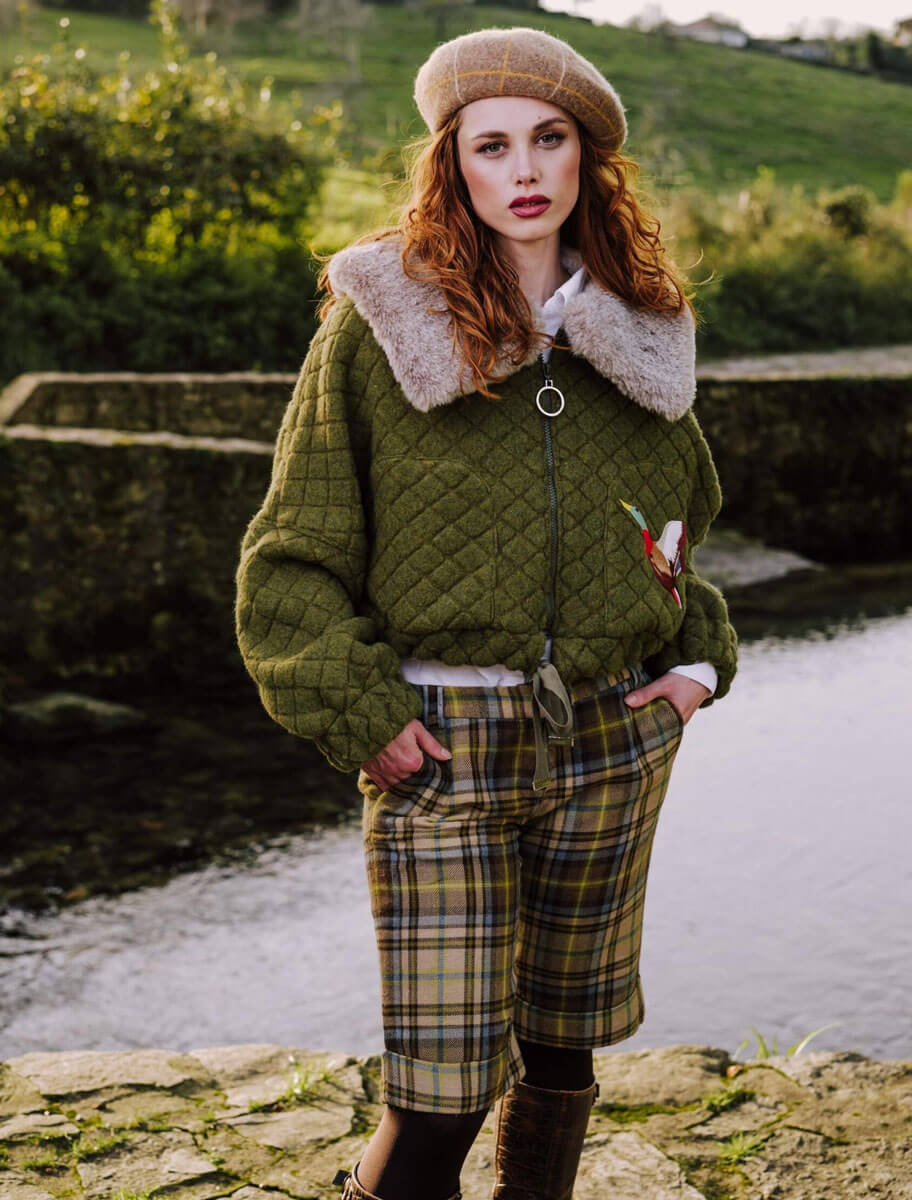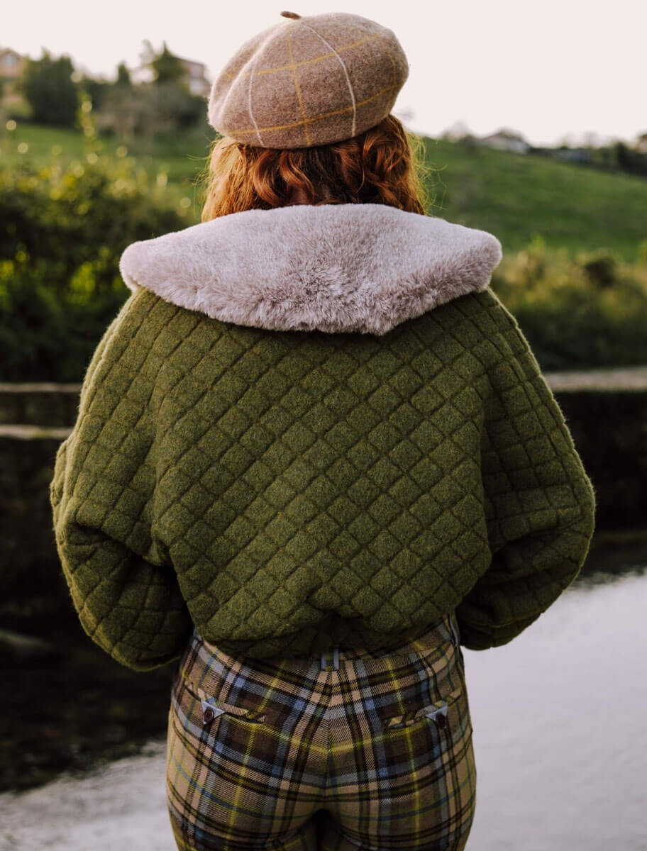 En lo profundo de Asturias, los Oscos guardan la esencia de la tierra: prados verdes infinitos y mañanas cubiertas de bruma. De esta raíz nace la Chaqueta Oscos, una prenda corta tipo over en tejido acolchado verde bosque, que evoca la fuerza natural del paisaje asturiano.